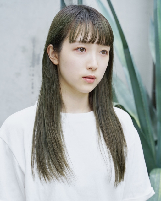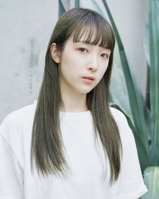 目尻よりもほんの少しだけ幅広く切った前髪が顔まわりをすっきりとバランスよく見せてくれます。
